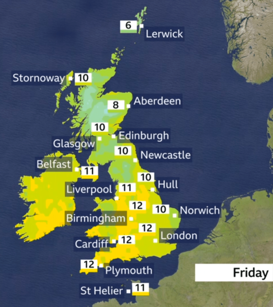 Saturday: Bright spells and showers. Much milder than recently so it will feel pleasant if you are sheltered from the gusty wind. There is a low risk that we could see some showers merge at times so keep an eye out on the forecast. Max 12°C Min 8°C Max Gusts 35mph