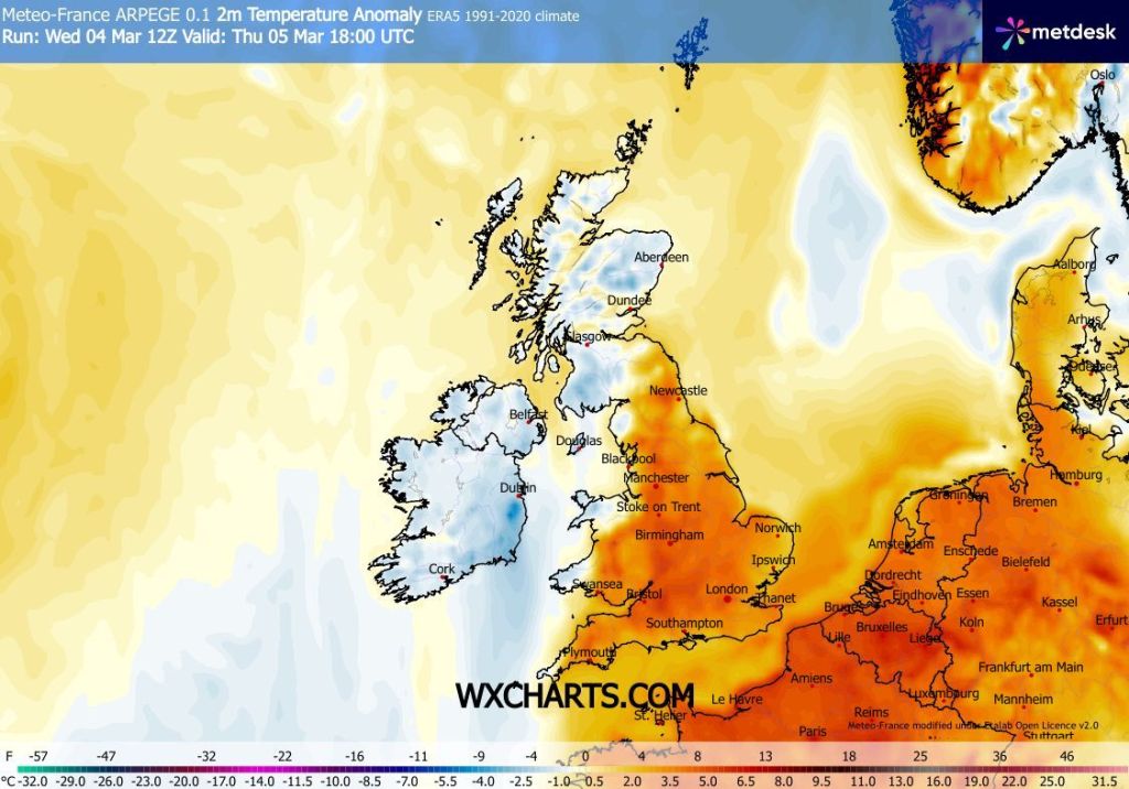 If you do have plans for Friday though, be aware that it will be much cooler again, even cold under the cloud and rain. But the outlook is promising. It looks like any prolonged rain will stay away to our north and west, and where we do see any brightness temperatures will respond. You know there’s always a cold spell around the corner in March, but at this present moment there is no sign of this arriving.