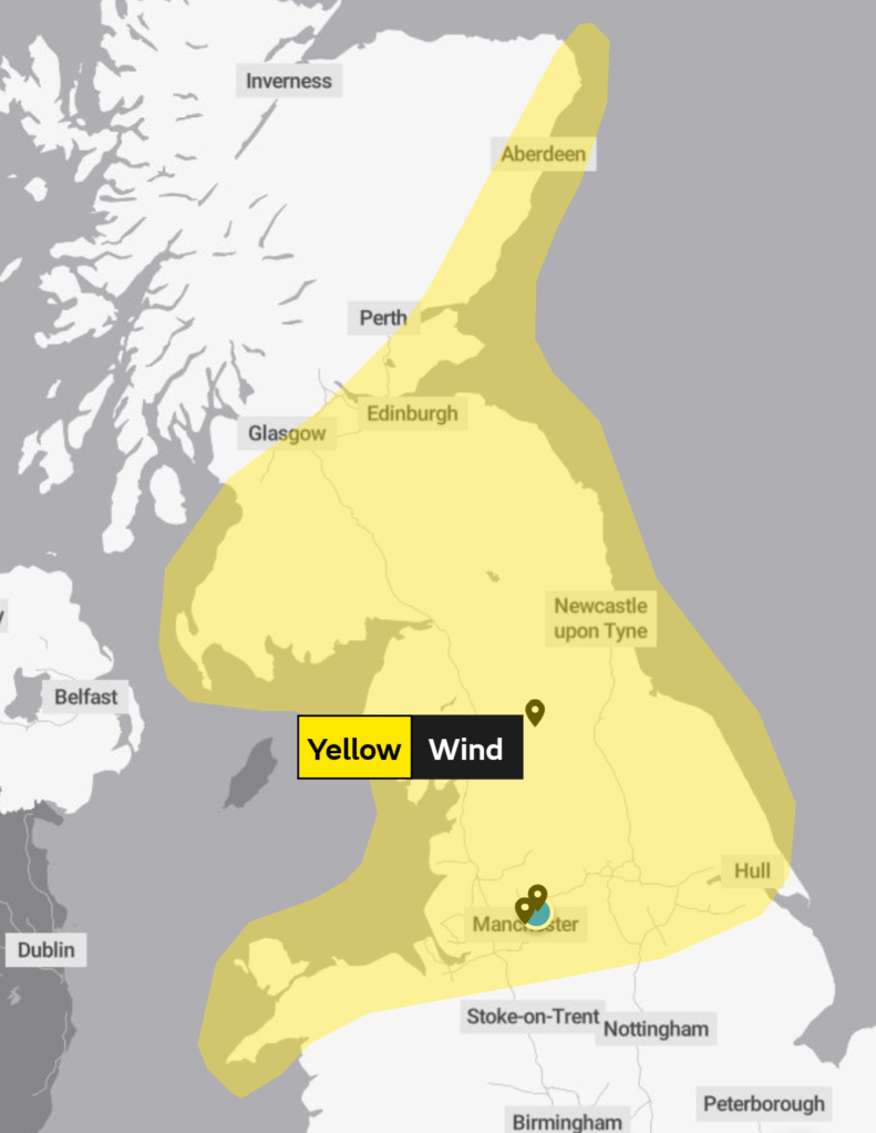 Friday: Another cloudy day with patchy rain at times but it shouldn’t be as cold as Thursday. It’ll be windy still which will make it feel chilly but winds will not be as strong as Thursday. Max 7°C Min 4°C Max Gusts 30mph