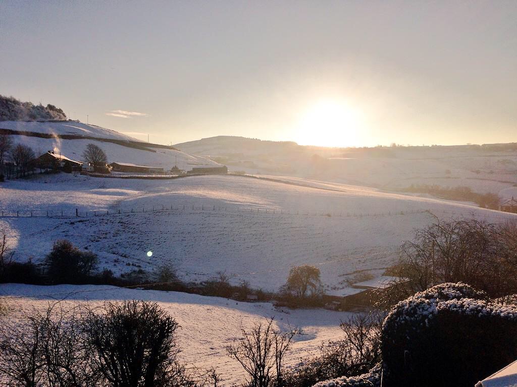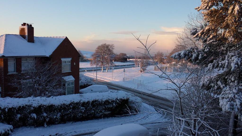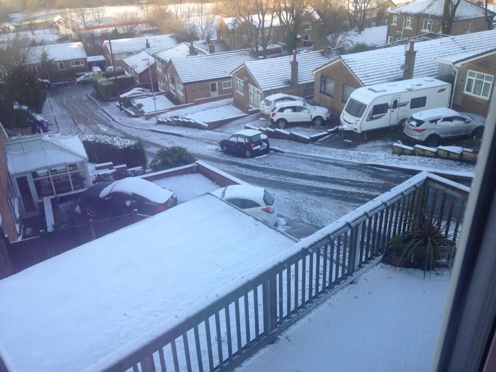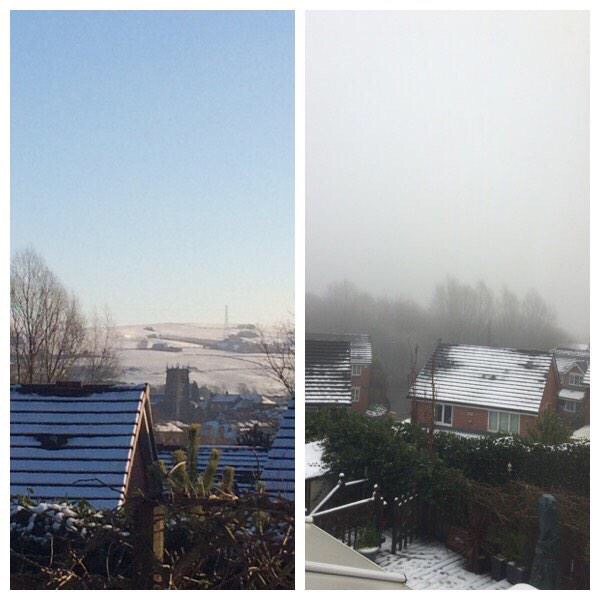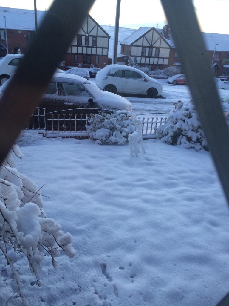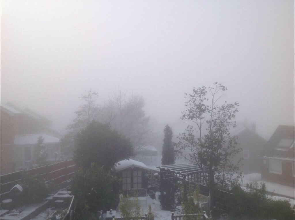 Rain on the evening of Boxing Day 2014 gradually turned to snow as a low pressure moves south-eastwards and colder air dug in from the north. Most places saw snow but it was all about your height above sea level whether it managed to stick or not. Here in Chadderton we had a slight covering on the cars and grass but you had to go up to the east of Oldham, to the likes of Moorside to see some decent snow. In these hillier areas up to 4 inches of snow fell over a 6-hour period. After the snow came the frost then some freezing fog. Here are a selection of the photos that I had tweeted to me. Thanks to everyone for their stunning photos. I hope you don’t mind me using them. Any issues using them please let me know.