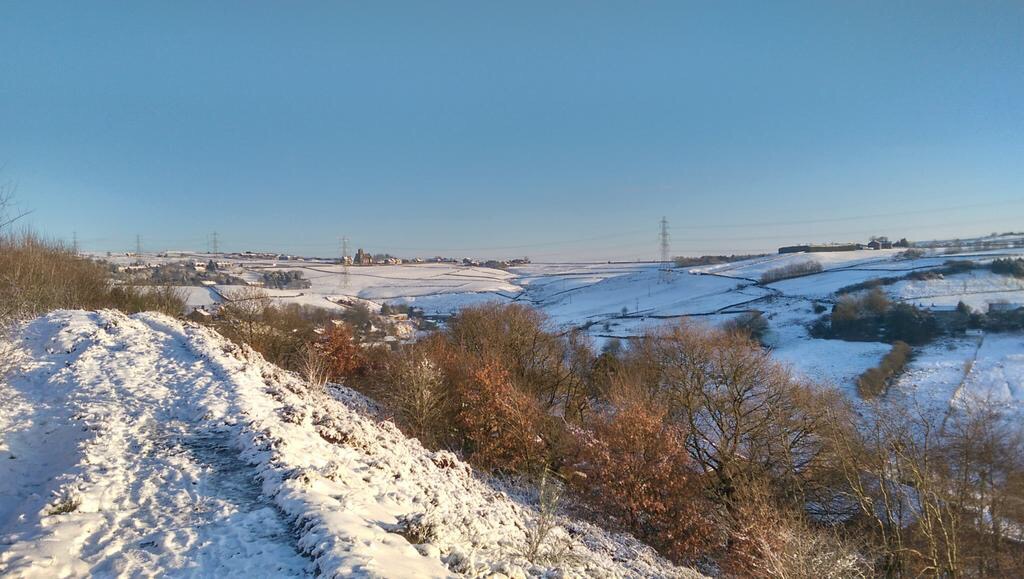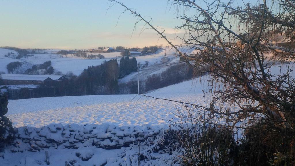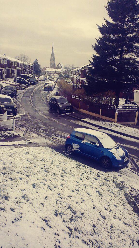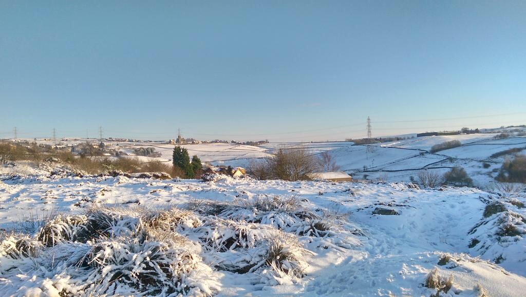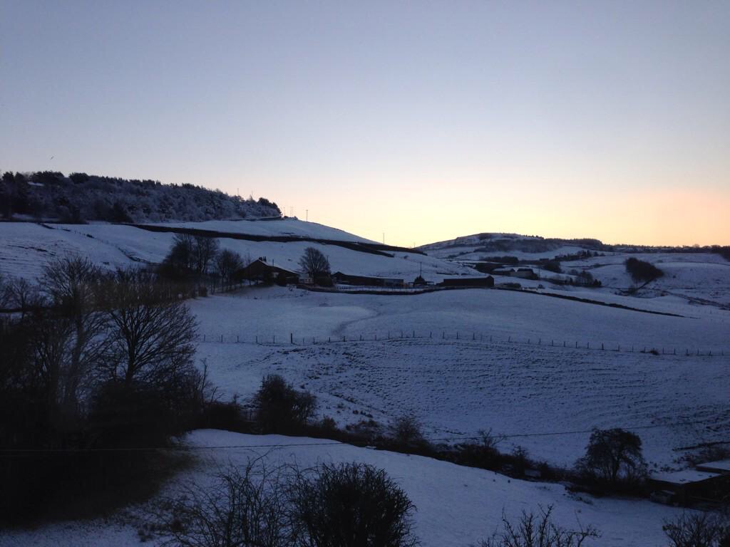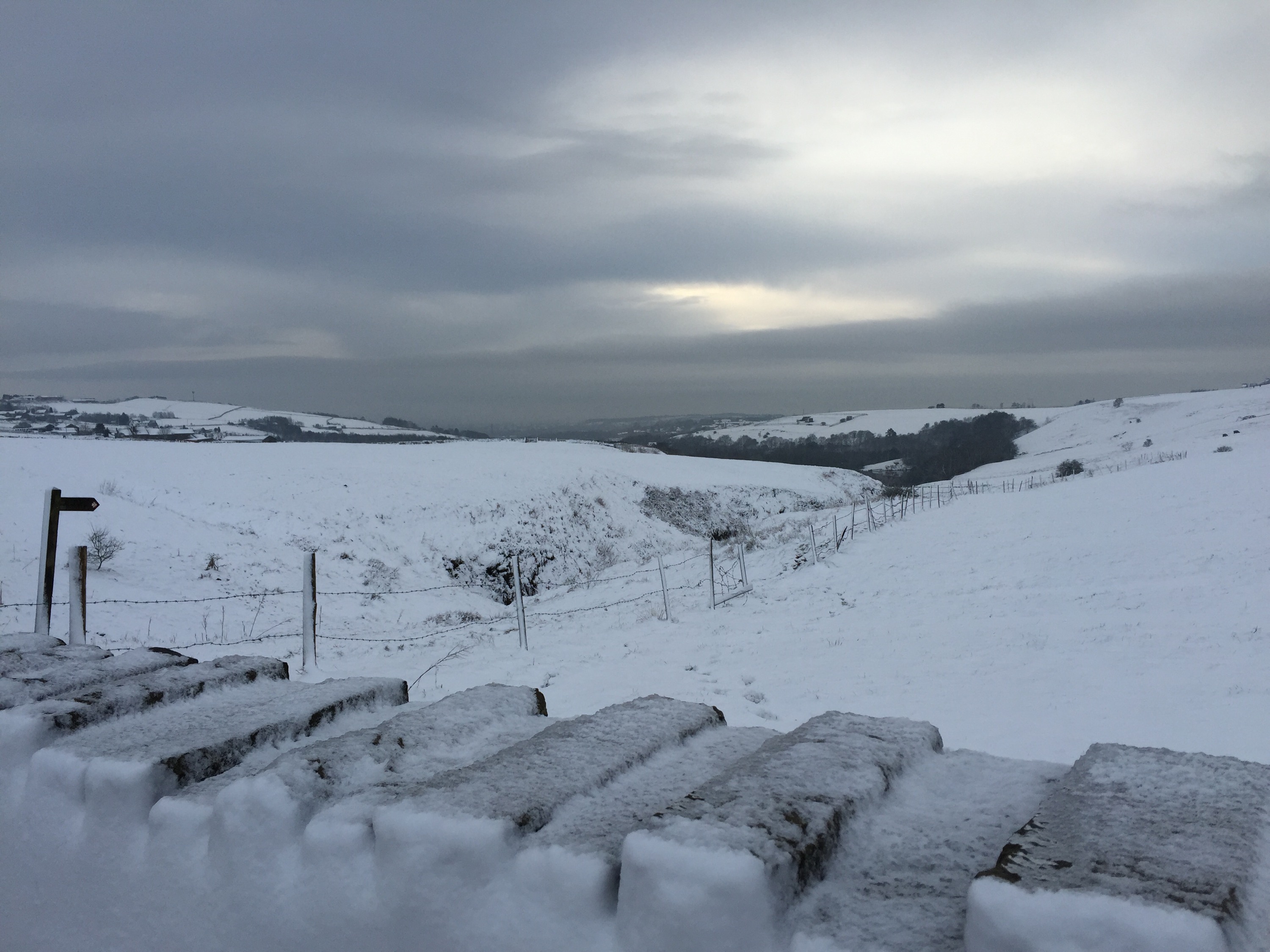 Rain on the evening of Boxing Day 2014 gradually turned to snow as a low pressure moves south-eastwards and colder air dug in from the north. Most places saw snow but it was all about your height above sea level whether it managed to stick or not. Here in Chadderton we had a slight covering on the cars and grass but you had to go up to the east of Oldham, to the likes of Moorside to see some decent snow. In these hillier areas up to 4 inches of snow fell over a 6-hour period. After the snow came the frost then some freezing fog. Here are a selection of the photos that I had tweeted to me. Thanks to everyone for their stunning photos. I hope you don’t mind me using them. Any issues using them please let me know.