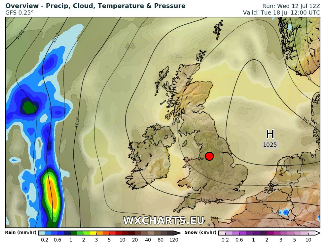 Looking ahead: Showery or longer spells of rain on the cards with temperatures remaining at similar values; 17-19°C, so definitely no sign of any settled, hot, summery weather returning.