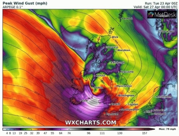 What a great week of weather it has been with temperatures rising into the 20s and breaking my warmest day ever recorded in April with 23.7°C (20th). It’s not unusual to have a decent, summer-like spell in late-April and our weather can soon return to the norm, as we are about to find out. After 20 days of no measurable rainfall, April Showers are back.