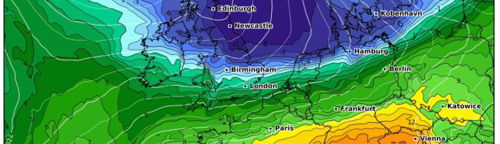 Sunday: Yesterday’s rain came south on a cold front and boy will we feel the difference. Cloudy with bright spells developing. A raw biting northeasterly wind and feeling much colder. Ground-frost overnight. Max 9°C