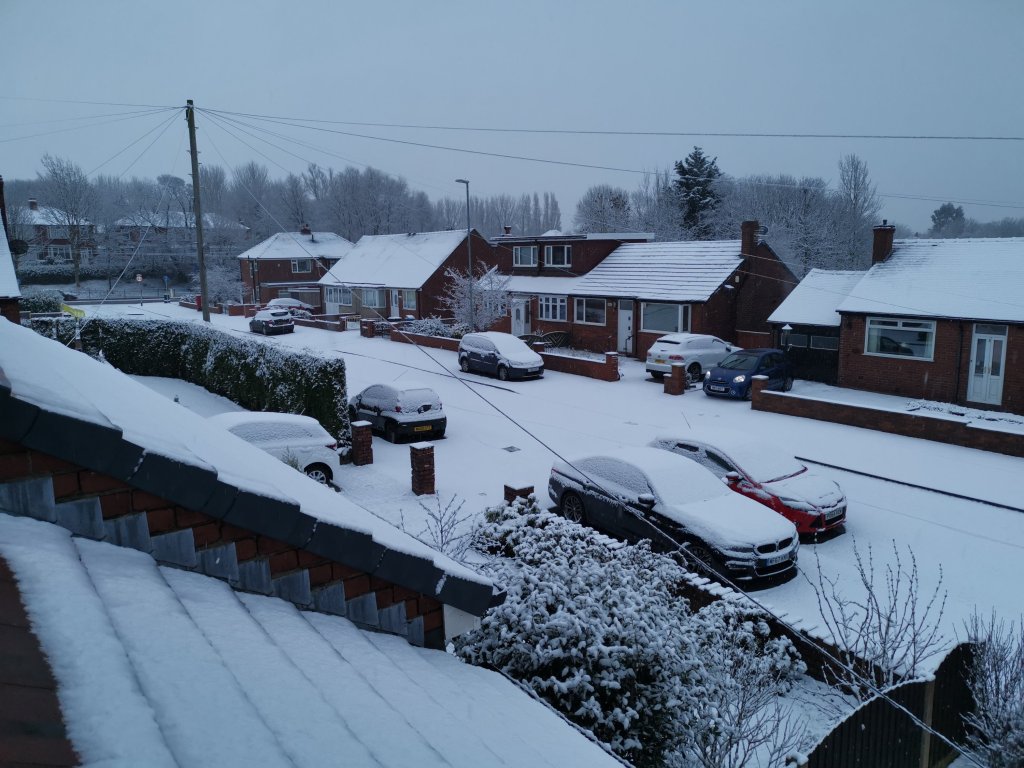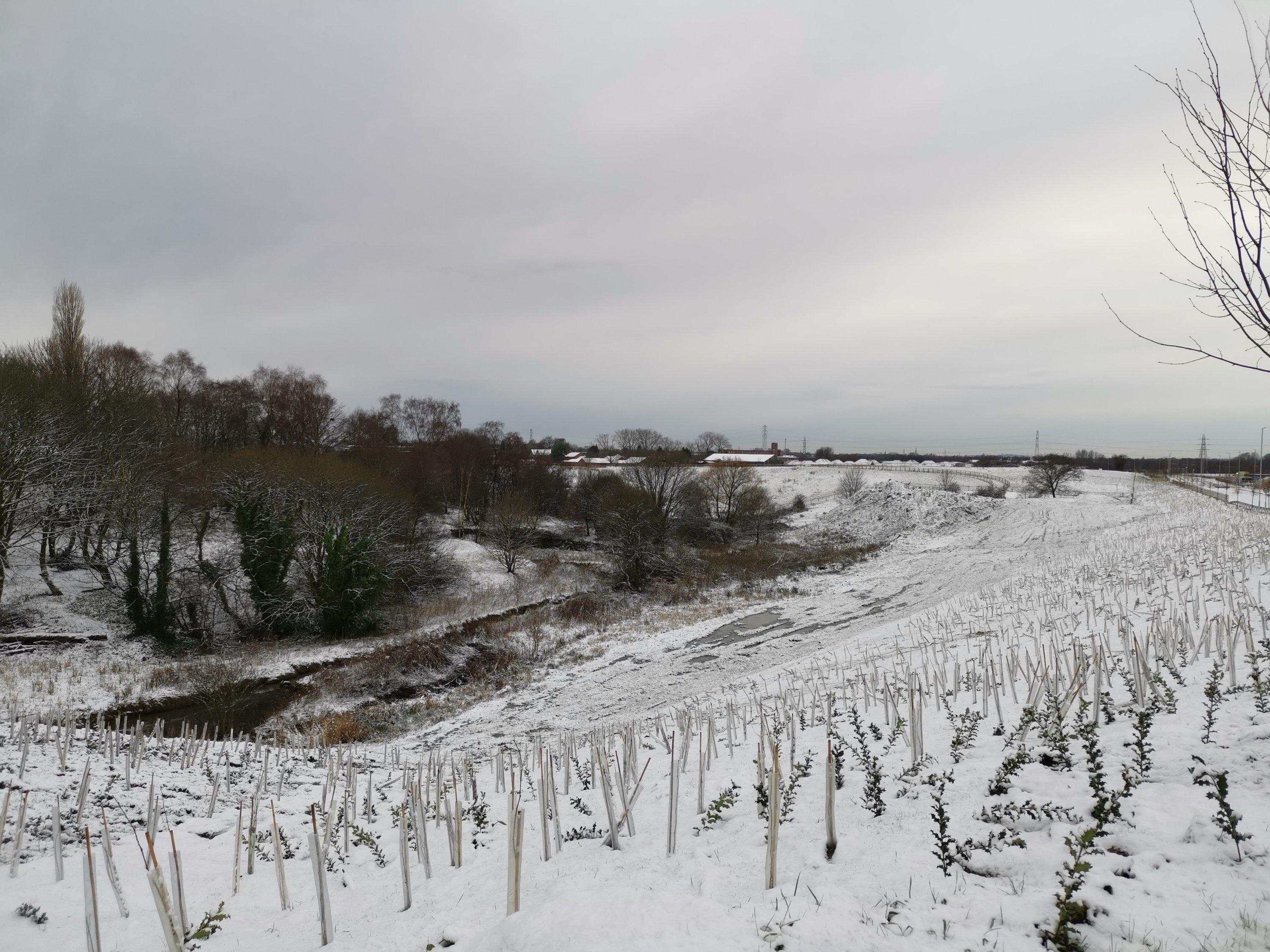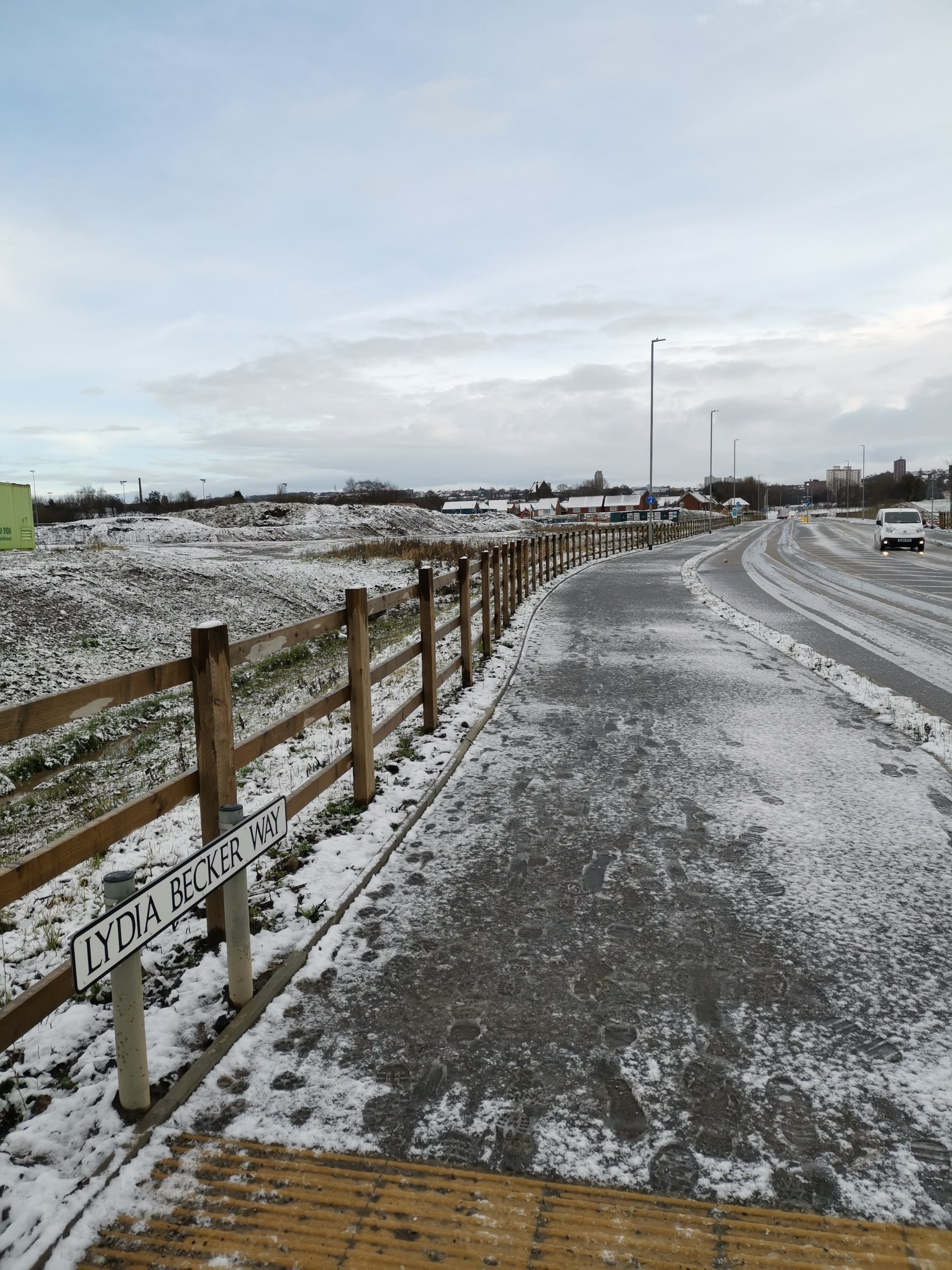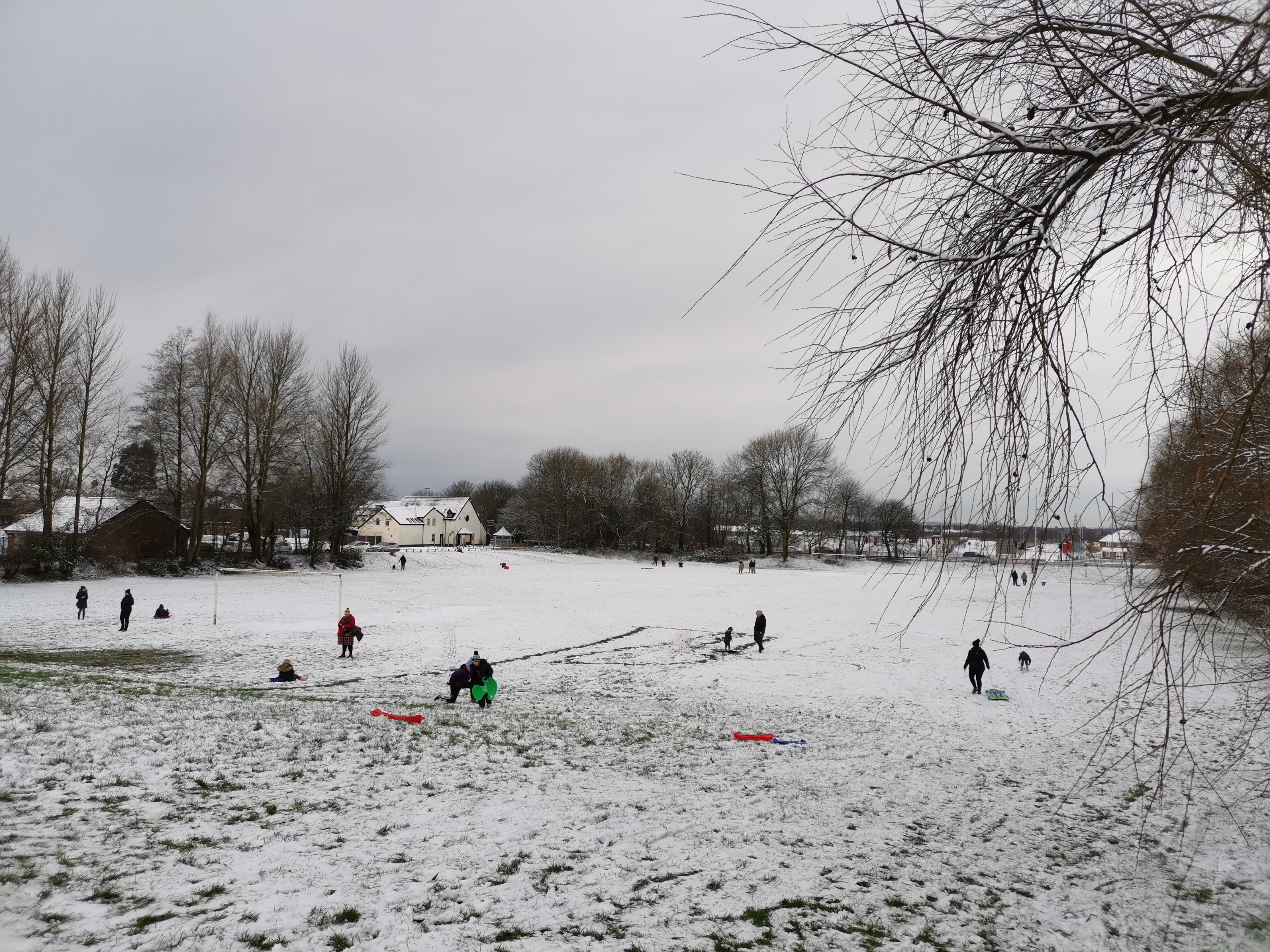 Snow on the morning of the 29th of December 2020Sledging on Ancora playing fieldsSnow on the verge by the new Broadway Link RoadCharlie the snowmanIcy conditions underfoot