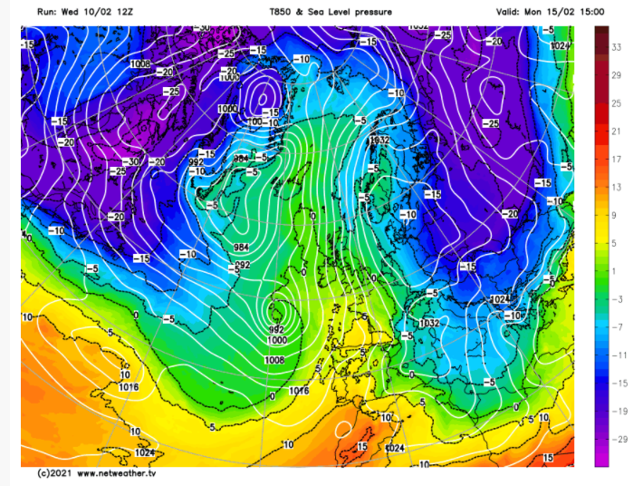 Outlook: Much milder, 10-12°C possible, windy with some further rain and a rapid thaw of any snow.
