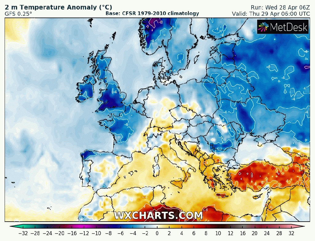 Friday: Similar. Patchy frost to start, sunny spells and feeling pleasant in the sunshine but scattered heavy showers developing, some with hail and thunder and lightning. Max 11°C