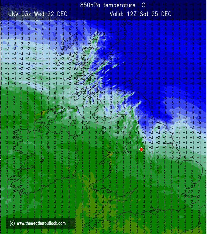 Christmas Day: A cold easterly wind which will be quite strong and gusty. Overcast with rain, patchy at times, easing. Another band of rain later. Winds gusting to 30mph and making it feel close to 0°C. High up, on the Pennines for example, there could well be the odd flake of wet-snow mixed in. Remember, only one flake makes it a White Christmas. Max 5°C