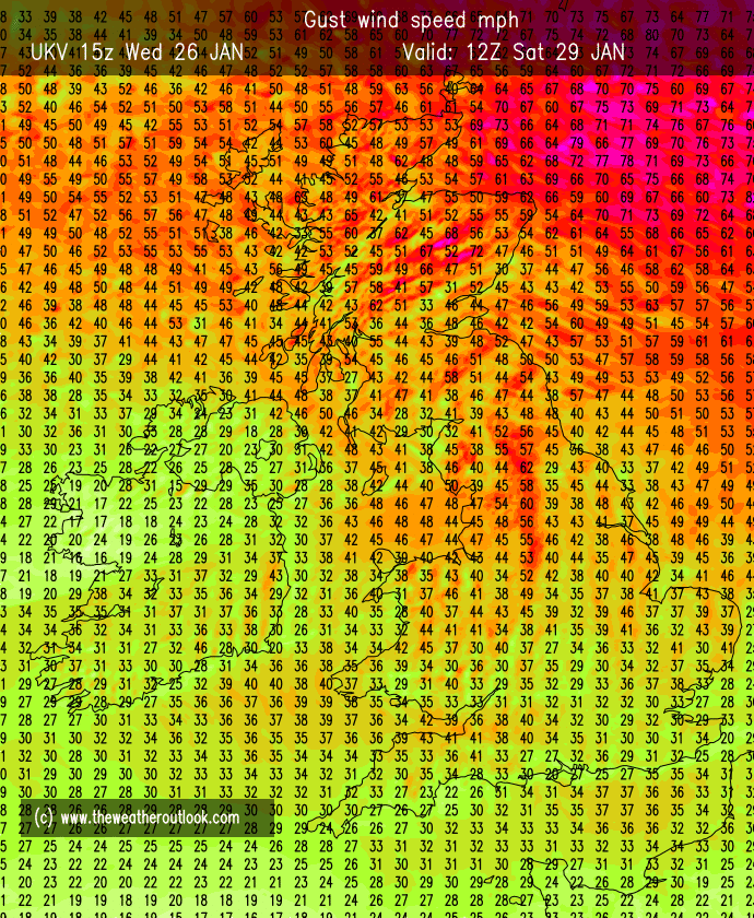 Saturday: Cloudy with a band of rain moving south-east through the region, weakening as it does so. Very windy with local gale-force gusts. Mild but cooler later. Max 11°C