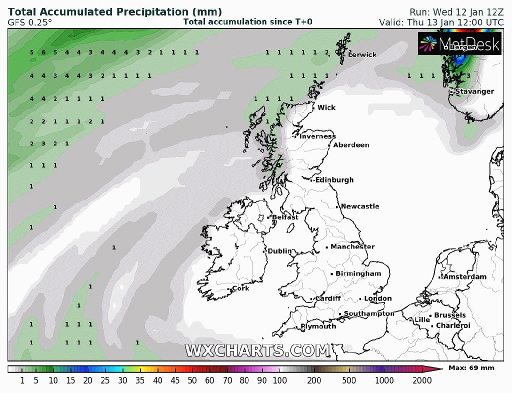 Friday: A bright start then cloud tending to increase from the west with a few spots of light rain into the evening. Windy. Max 10°C