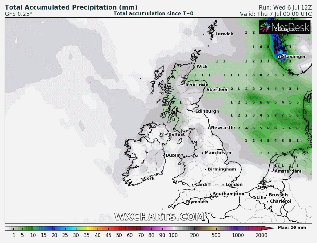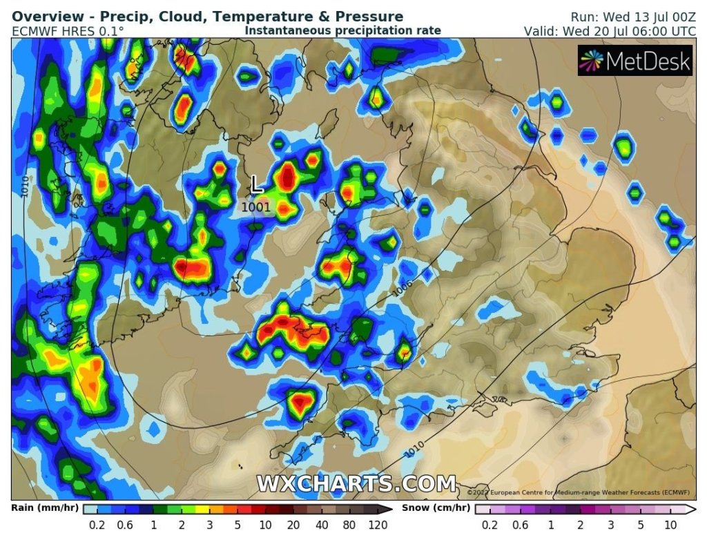 Thursday: Generally cloudy with a chance of some light patchy rain or drizzle. A lucky few will see bright spells into the afternoon but still we can’t rule out a shower. A warm night. Max 20°C