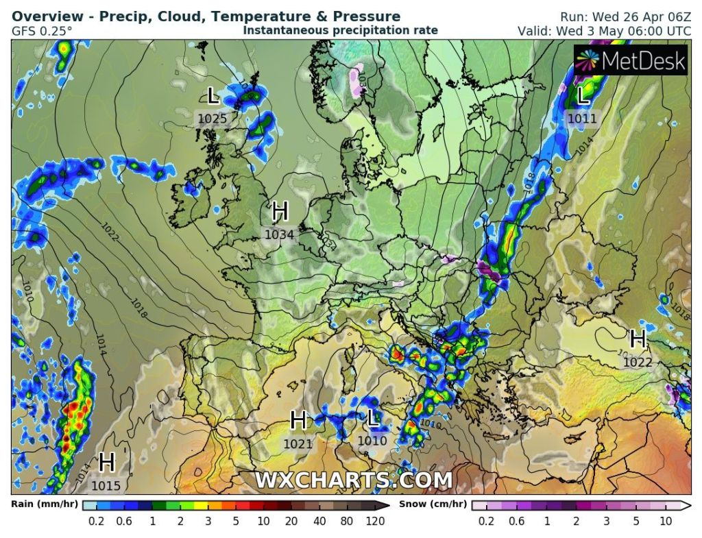 Outlook: A tricky set up. A weak area of high pressure will be close by but not strong enough to bring dry and sunny conditions every day. More like variable cloud for most of the week, so brightness at a premium and some showers brewing up. Temperatures around average.