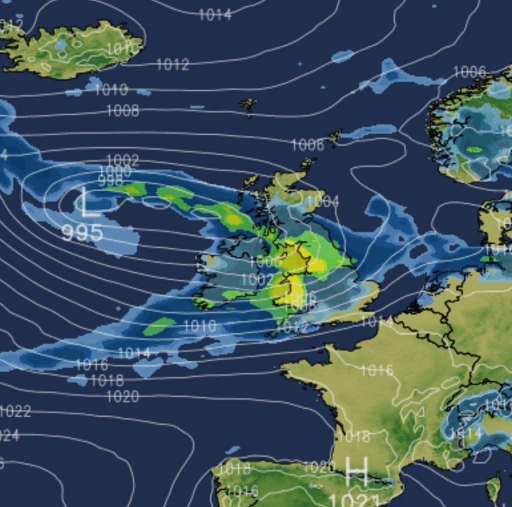 Saturday: Low pressure will once again drive our weather. Some bright spells and showers, some heavy and perhaps thundery. Windy. Max 19°C Min 13°C