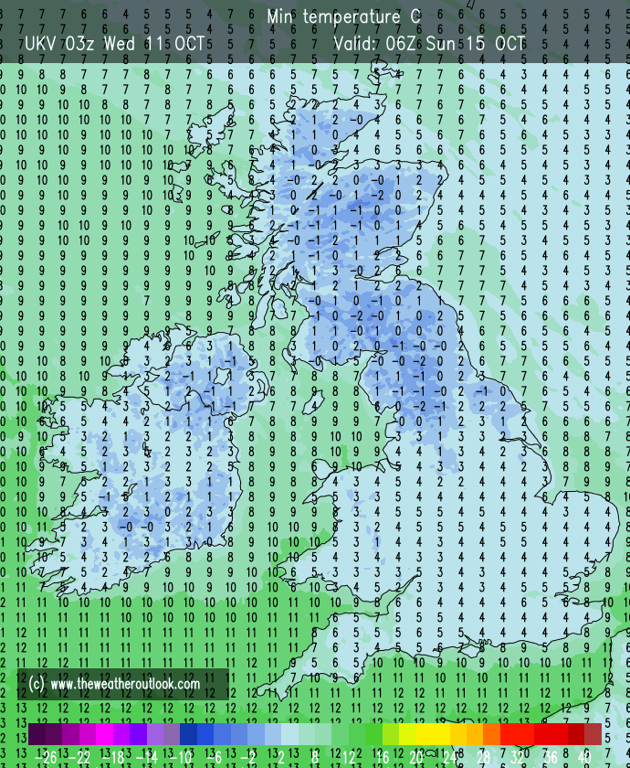 Sunday: A little uncertainty for this particular day with a band of persistent and heavy rain likely during the morning. This moves away to the north leaving an afternoon of scattered heavy showers. Max 12°C Min 7°C