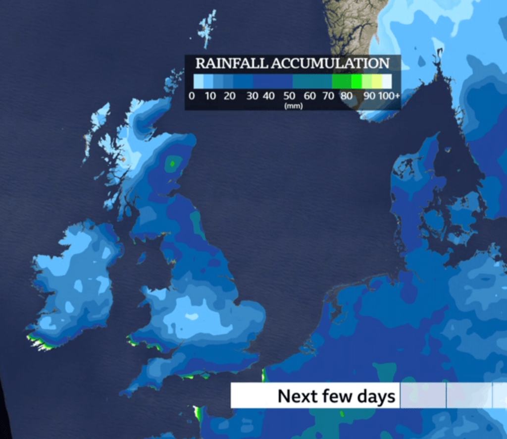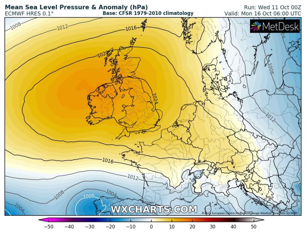 October is certainly delivering a wet one, with plenty of flooding across the UK. So far we’ve seen 105mm of rain, and we’ve escaped the worst of it. The average for the whole of October is 107mm so we’ll be exceeding that before month-end. As we enter November little change is expected overall. More unsettled weather to come.