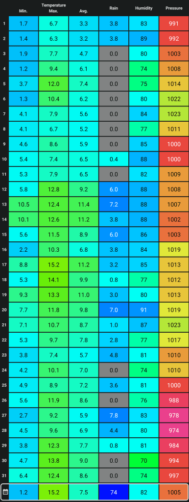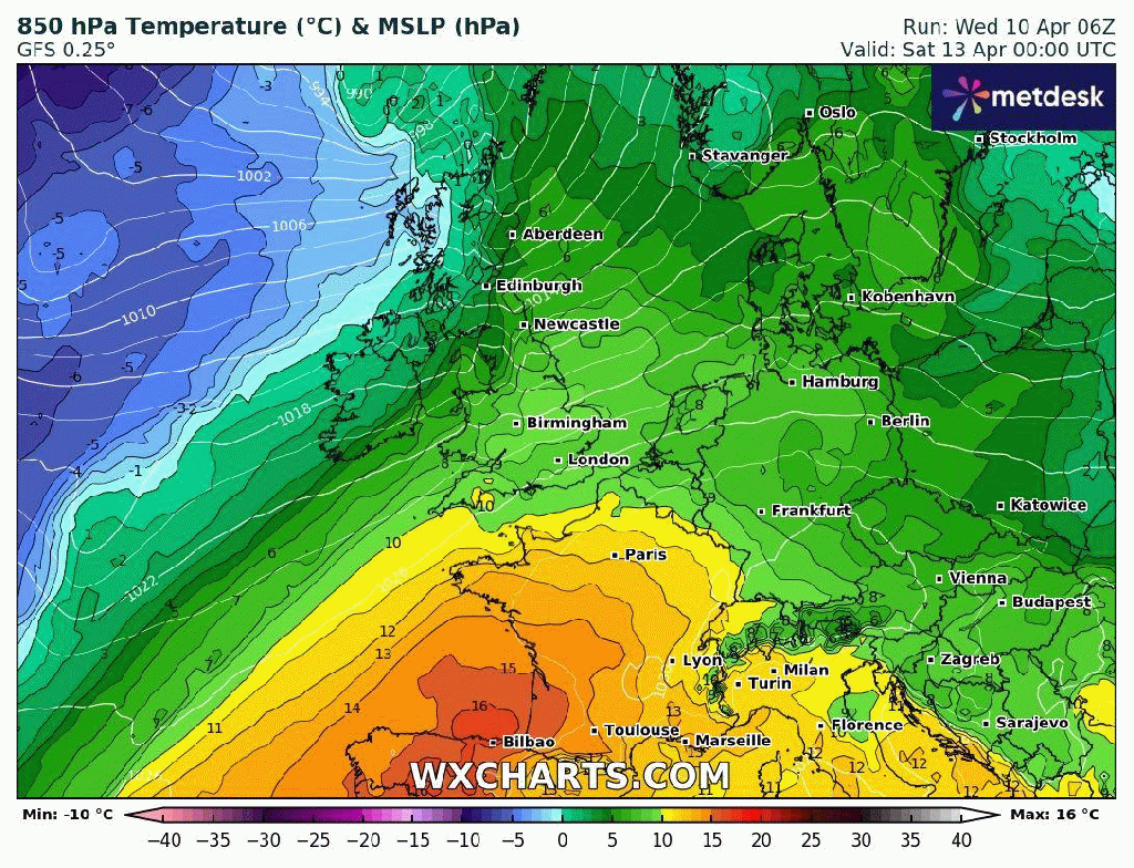 Friday: A cold-front will have moved south so cooler air across the region and a steady northerly breeze. Bright spells on offer though and it is expected to be mostly dry. Max 10°C Min 3°C
