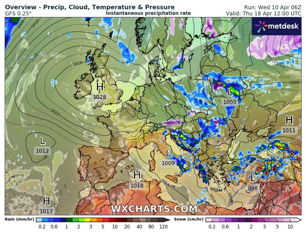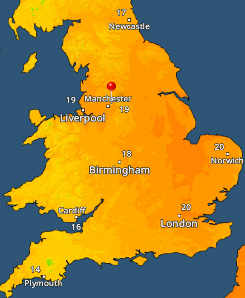 After more rain this week, and some autumnal weather on Monday, bringing strong winds, 20mm of rain, hail & thunder, the weather is slowly but surely becoming more settled and drier but it’s not a smooth passage. Rain is still in the forecast but the high pressure mentioned last week is coming to our shores to dominate for the weekend. As said on a few X posts, it’s not going to be days upon days of wall-to-wall sunshine nor is it going to be that warm.