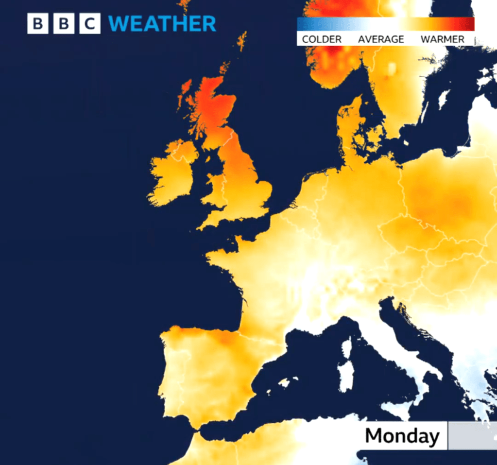 Bank Holiday Monday: Some uncertainty this far out, but it looks like low pressure will begin to develop across the UK, albeit quite slack. This means relatively light winds and apart from the odd bright spell, we’re expected to grow some beefy slow-moving showers into the afternoon which could be thundery. Max 17°C Min 9°C