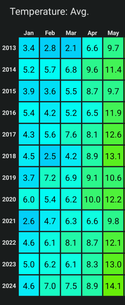 After a cool June for most of the month, the averages for May and June are now close. June’s average was running well below May until this recent summery spell.