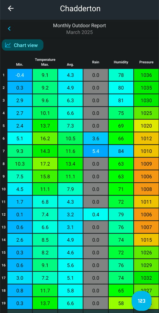 Even with rain arriving into Friday, I’m expecting March 2025 to be the driest March I’ve ever recorded. Data started in 2013.