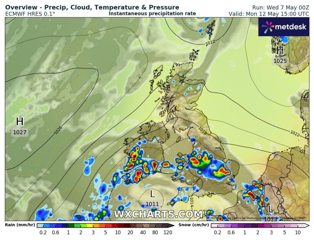 Outlook: It’s quite a simple outlook for most of the week as high pressure continues to stay in charge, bringing sunny skies and dry conditions. Temperatures sitting around 20°C. It’s later in the week, where the forecast gets a little bit tricky from this far out, but there are signs, which I’ve been hinting at for a few days now, that high pressure will slip away and low pressure will start to bring weather-fronts in from the west. We will finally see some rain and this could mean the final week of May brings unsettled conditions. One to watch for now and look out for updates on social media. The petrichor smell will be epic.
