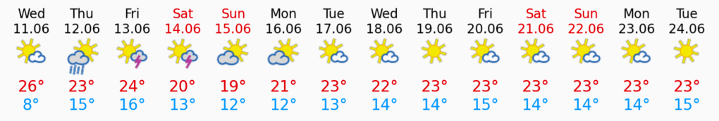 So far June has an average temperature of 15.6°C which makes it the joint-second warmest June I’ve recorded with records back to June 2013. June 2023 was the warmest at 17.3°C. This is mostly down to some warm and muggy nights, and we have some more of these to come this week.