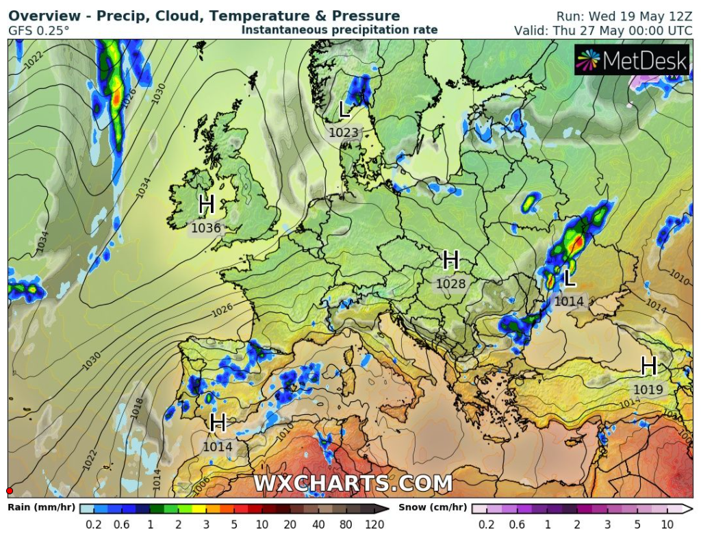 Sunday: Another cracking day with sunny skies and hot temperatures. Max 27°C (locally 29°C can’t be ruled out)