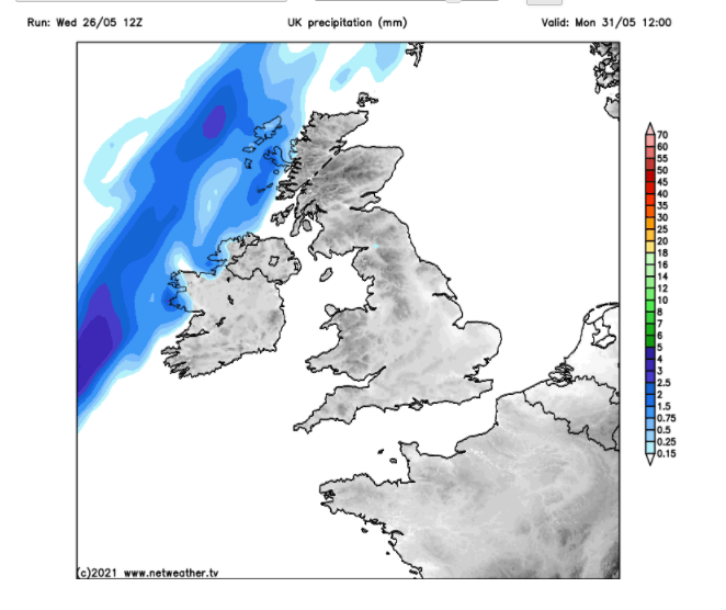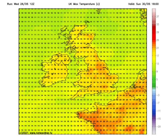 Outlook: Monday to Wednesday will remain sunny, dry and very warm but possibly a couple of degrees coming off the temperature. Signs are there that the weather will break later in the week, but at this stage details are uncertain so look out for updates on Twitter.